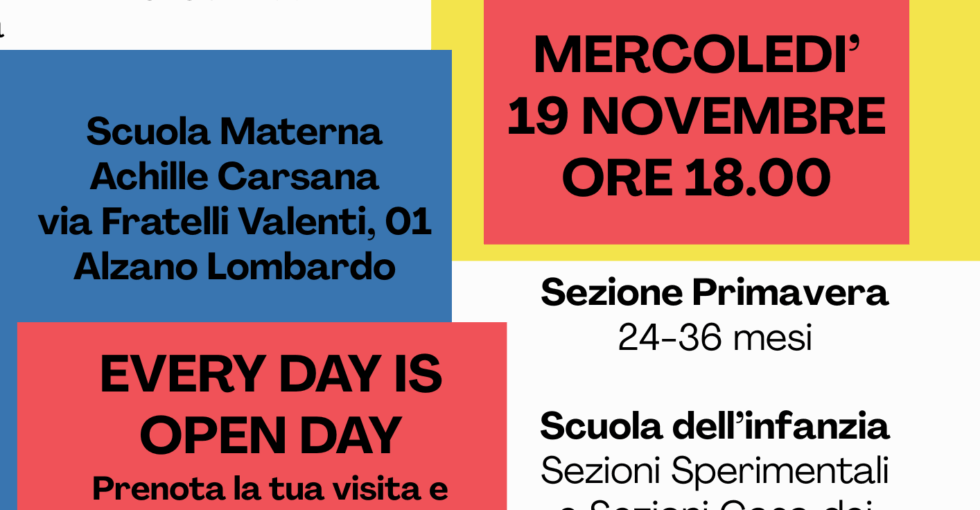Sempre attiva la formula Everyday is Open day: prenotando il tuo appuntamento, avrai la preziosissima opportunità di visitare la scuola mentre è ABITATA dai bambini e conoscere la nostra Offerta Formativa in totale coerenza fra il dichiarato e l’agito!!!!!