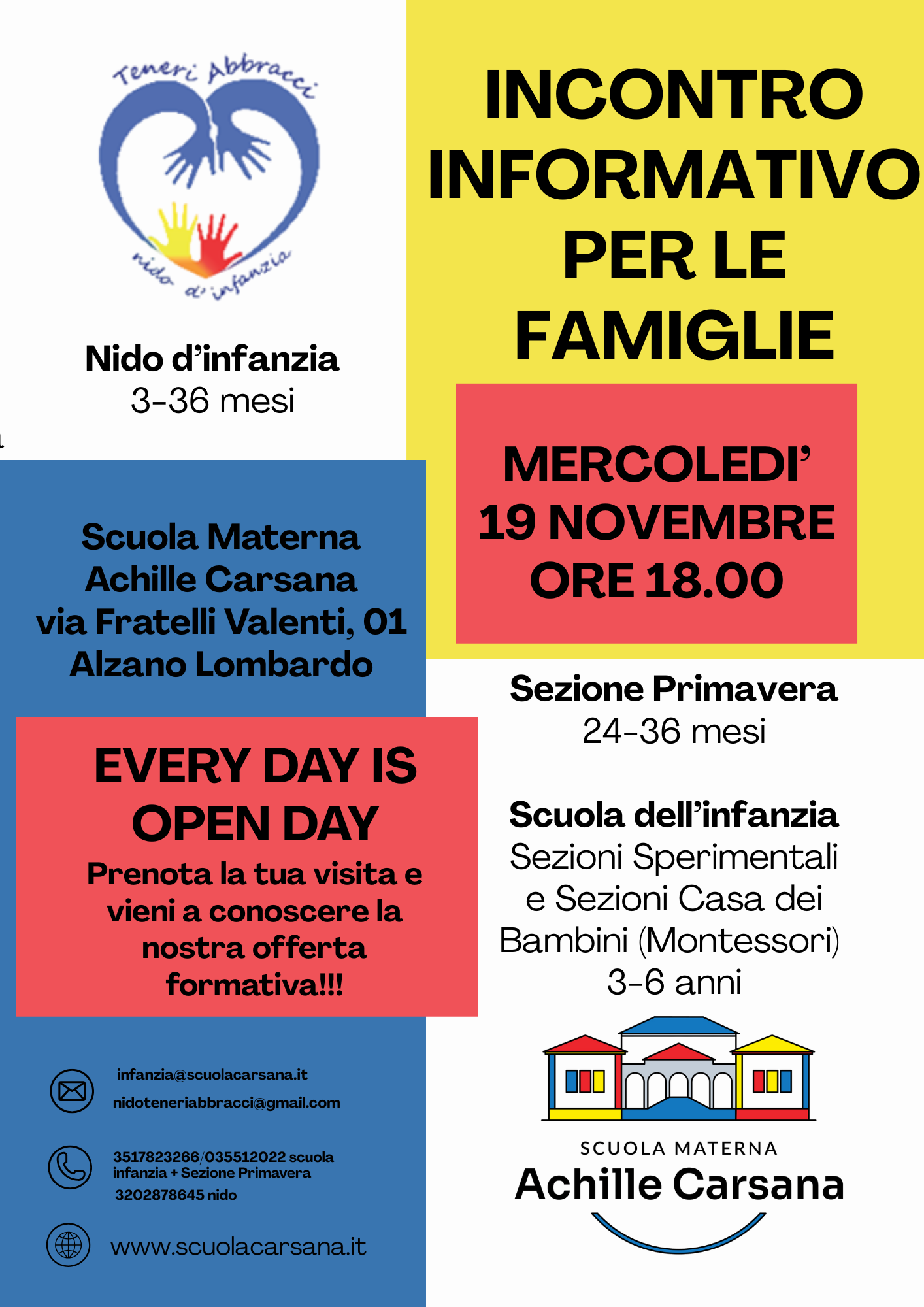 Incontro informativo per le famiglie interessate alle iscrizioni per l’AE e l’AS 2026_2027 per: