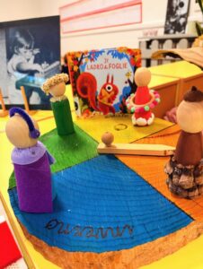 Il percorso prosegue poi con i bambini già frequentanti, che ritrovano la storia e riprendono la metafora del filo come elemento di connessione e continuità.